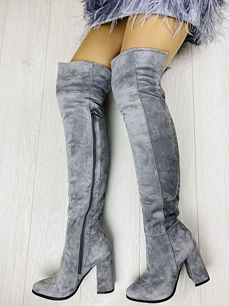 Женские ботфорты NIVELLE 5154 9518-9548 серые осень-весна замша натуральная