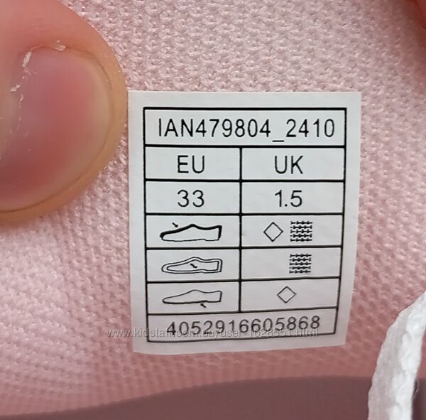 EU 33, US 2 Y ,UK 1.5 , довжина устілки від краю до краю 21.6 см і ширина 7.4 см
