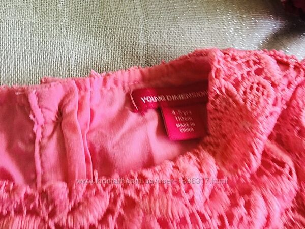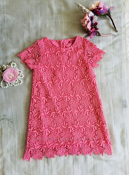 H&M. Young Dimension. 4-5 лет и 8-9 лет. Три цвета. Сестричкам. гипюровое. ажурное. веницианское дорогое кружево. Нежно- розовое; Ярко - розовое; Ярко - синееКрасивенный цветочный принт, низ платья , листочки. На подкладочке.