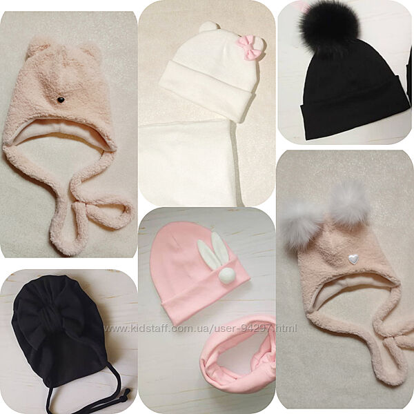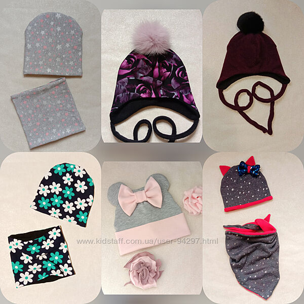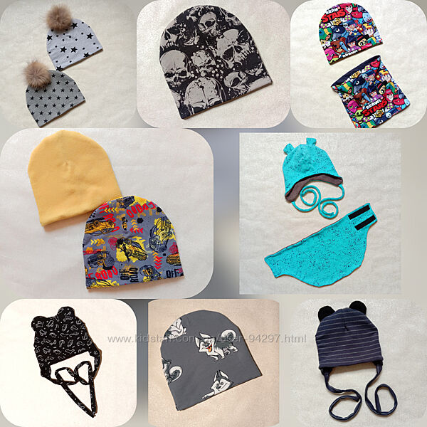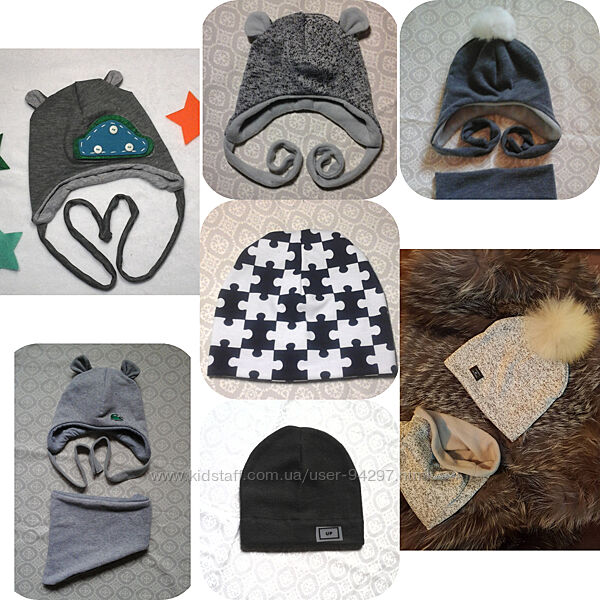 Шапочки и наборы для мальчиков и девочек зима, евро зима, деми