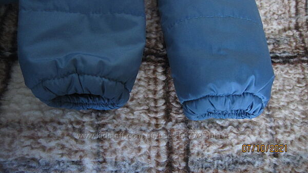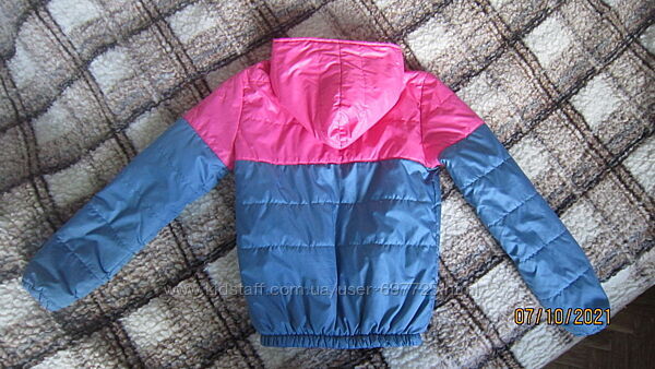 Куртка на подкладке, с капюшоном, застежка на молнию, есть два кармана на молнии, рукава и низ на резинке.