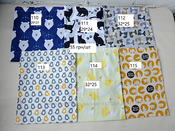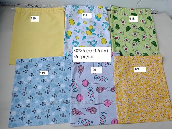 Еко торбинки для зберігання/пакування/продуктів.Мішечки виготовлені з бавовняних тканин: бязь, ситець, ранфорс, штапель. Уточнюйте якщо принципово, з якої тканини виготовлений мішечок, який Вам сподобався (повідомте номер-артикул).
