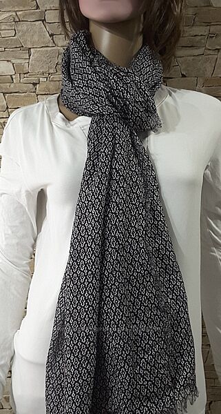 Трендовый шарф с принтом фигурки нидерландского бренда Scotch&Soda разнообразит вашу коллекцию аксессуаров в новом сезоне!Размер - длина 2,15 м, ширина 1,3 м - отличный размер - позволит завязывать шарф разными узлами: французский, аскот, художник, одинарное обёртывание, дрейп» - накинуть на шею, не завязывая.