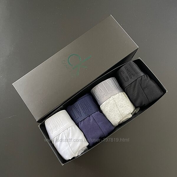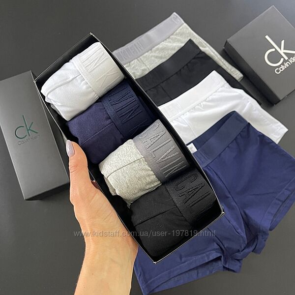 Набор 4 шт. Мужские трусы боксеры короткие Calvin Klein striped в коробке. Мужское нижнее белье. Трусы боксеры. Подарок мужчине, парню. Качество премиум. Труси чоловічі Calvin Klein striped преміум якості. Чоловіча білизнаCalvin Klein striped . Боксери Calvin Klein striped .➖ В наявності: білий, сірий, чорний, синій