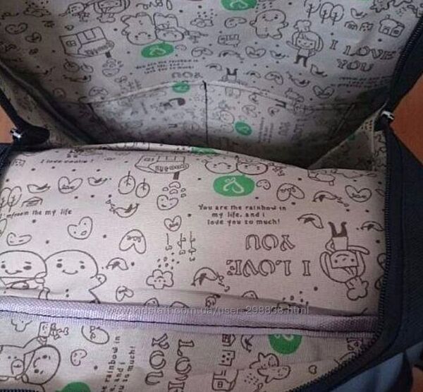-основного большого отделения, на подкладке, (с внутренним, большим открытым карманом с уплотненной перегородкой для гаджета) закрывающегося на молнию с двумя бегунками ;