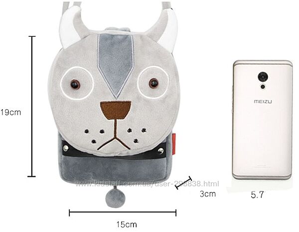 Подробное описание: Детская мини сумочка Волк для телефона на плечо серая мягкая плюш качество