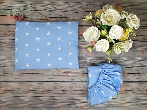 Набор в коляску: подушка( бабочка или прямоугольная 25*32) и простынь на резинке .Ткань 100 % польский хлопок.