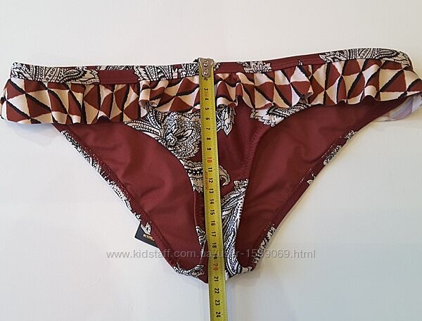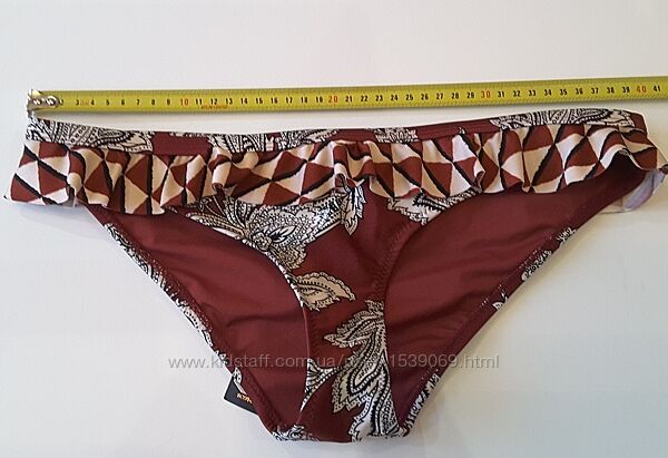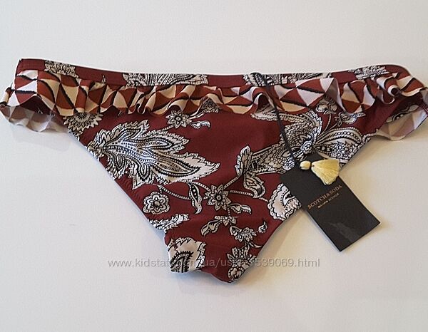 Кокетливые трендовые купальные трусики с рюшей , размер М с принтом нидерландского бренда Scotch&Soda, Maison Scotch не оставит равнодушной ни одну девушку, которая обожает этот бренд!Трусики с заниженой талией . В спокойном состоянии полуобхват пояса 40 см - потянутся до максимум полуобхвата 46 см.