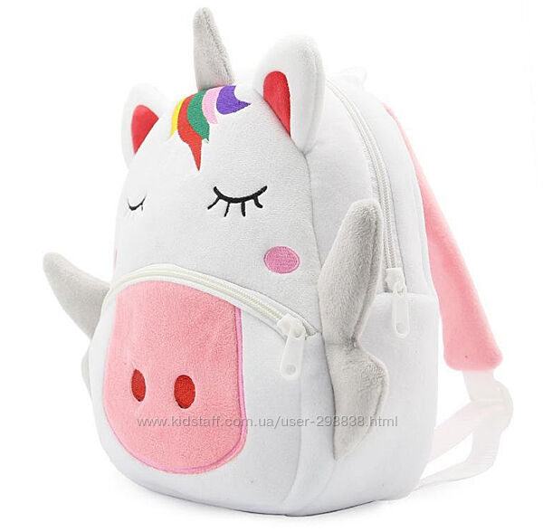 Рюкзак детский для любимых малышей "Единорог" плюшевый белый розовый девочке мягкий маленький качественный .КОД товара К28