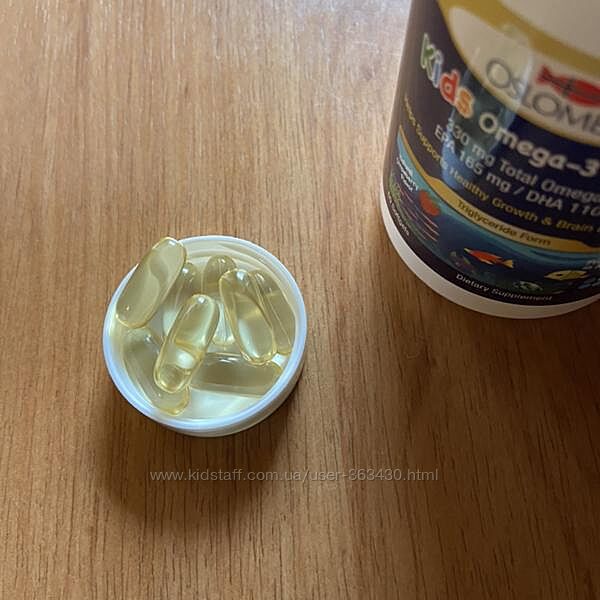 Після дуже тривалої перерви нарешті знову почала з´являтися на IHERB дуже популярна дитяча омега Осломега.Тригліцерідна форма, дозування 330 мг на капсулу, полуничний смак, і приємна ціна порівняно з нордік з таким же дозуванням на 30 шт