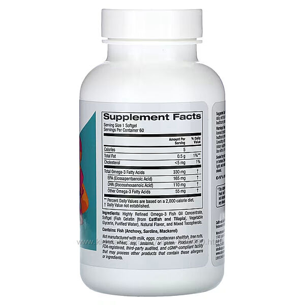 Омега-3 жирні кислоти відіграють важливу роль у підтримці оптимального стану здоров’я та гарного самопочуття. Омега-3 ЕПК і ДГК відомі своєю підтримкою багатьох функціональних систем організму, а також тим, що сприяють здоровому росту й розвитку мозку в дітей*. Прийом дитиною добавок з омега-3 може допомогти їй отримати достатню кількість цих поживних речовин, навіть якщо їх бракує в раціоні.