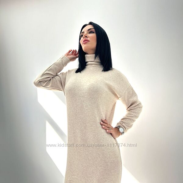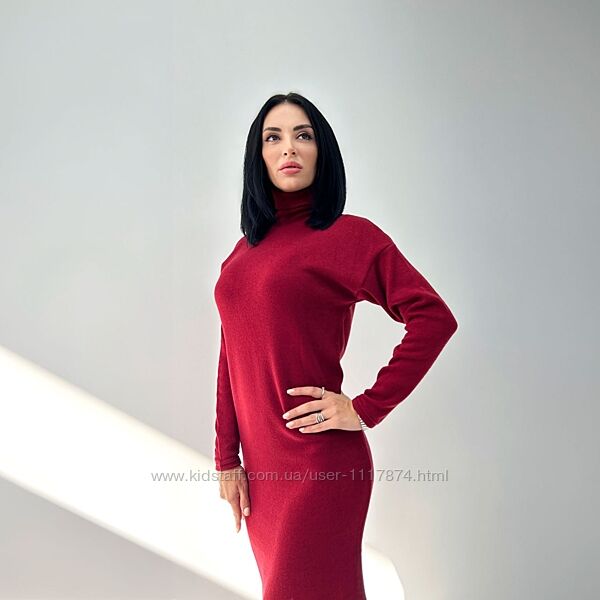 Виготовлено теплу сукню з якісної трикотажної тканини двостороння ангора. Матеріал мякий, щільний, не просвічує і досить приємний на шкірі.