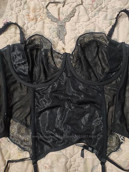 Подробное описание: Шикарный сексуальный корсет бюстье бра со шлейками для чулок на F.