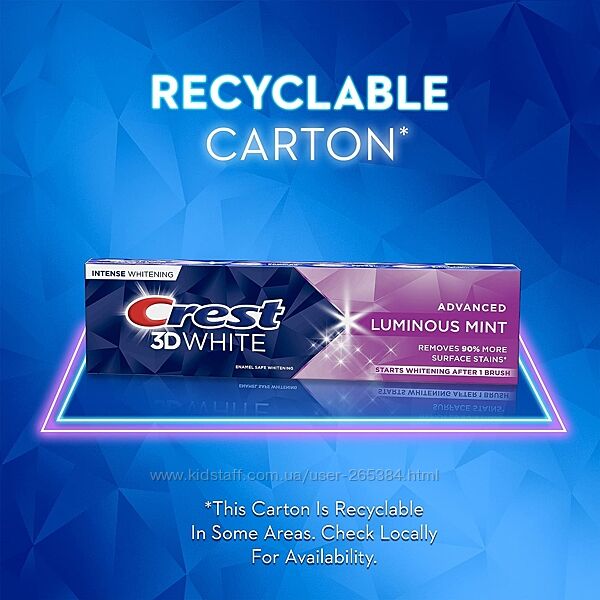 Подробное описание: Интенсивная отбеливающая зубная паста Crest 3D White Luminous Mint. США