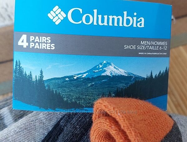 Подробное описание: Зимние теплые носки Columbia с доб. шерсти, 4 пары, р. 6-12 US, оригинал