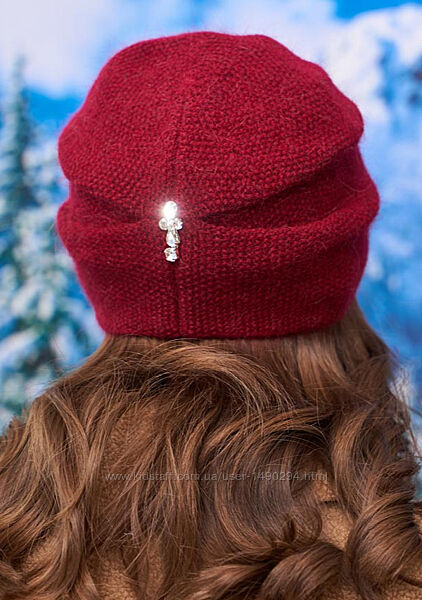 Подробное описание: Шапка женская вязаная на флисе бордо