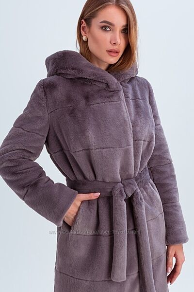 Утепленная шуба с отстрочкой «Опра» настоящая находка, если вы не терпите морозы. Шубка из эко кролика на утеплителе слимтекс хорошо сохраняет тепло, а защиту от холода гарантирует вшитый капюшон. По основанию модели и рукавам горизонтальная отстрочка. Втачные рукава, прорезные карманы. Длина модели ниже колен. Застегивается шубными крючками. Есть пояс.