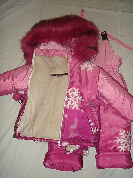 Зимний комбез, на рост 110, на 5 лет, теплый и легкий, куртка на флисе, плащевка, наполнитель-- силиконизированный синтепон, низ куртки можно затягивать, вязаные манжеты, ЭКО мех на капюшоне, очень красивый, полукомбез вверху регулируется карабинами и его можно подвернуть на 9--10 см.Дл.спинки-- 50-51см
