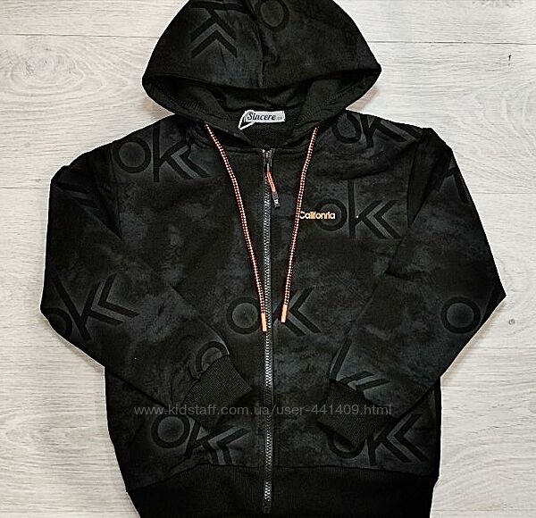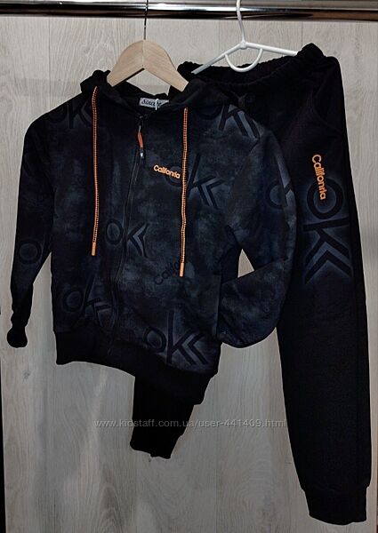 Спортивний костюм для хлопчика. Стильна і практична модель костюма, дуже якісна. Всі складові костюма можна носити як разом, так і окремо, вони чудово поєднуються з будь-якими речами гардероба. Є кишені і на кофті і на брюках. Дуже стильний принт.заміри:р.134: штани 75 см, кроковий шов 51 см, напівобхват талії 27 см, напівобхват стегон 40 см, рукав від плеча 42 см, напівобхват грудей 40 см, довжина кофти 48 смр.140: штани 77 см, кроковий шов 54 см, напівобхват талії 27 см, напівобхват стегон 44 см, рукав від плеча 44 см, напівобхват грудей 42 см, довжина кофти 50 смр.146: штани 85 см, кроковий шов 60 см, напівобхват талії 28 см, напівобхват стегон 46 см, рукав від плеча 48 см, напівобхват грудей 43 см, довжина кофти 52 см