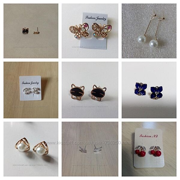 Серьги сережки птица кот бабочка рыбка гардения вишня жемчуг.