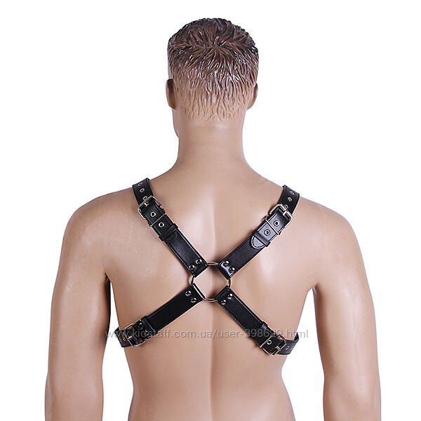 Изделие сделано из разной длины ремешков, соединенных между собой металлическими кольцами. Качественный материал, обработанные края, массивые металические аксессуары. Мужская портупея на грудь станет отличным дополнением к любому образу.