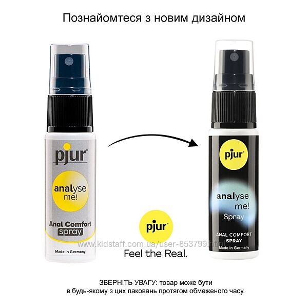 продукт, розроблений спеціально для комфортного анального сексу. Його активні інгредієнти — пантенол та алое — проникають у верхні шари шкіри та посилюють їхню еластичність, у такий спосіб усуваючи гіперчутливість у зоні входу.Розслаблювальний анальний спрей pjur analyse me! простий та зручний у використанні. Зручний флакон із розпилювачем дає змогу наносити засіб точно на ті ділянки, які потребують десенсибілізувального ефекту.
