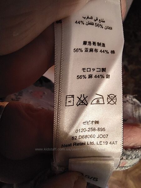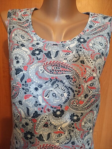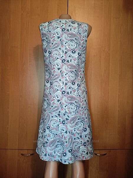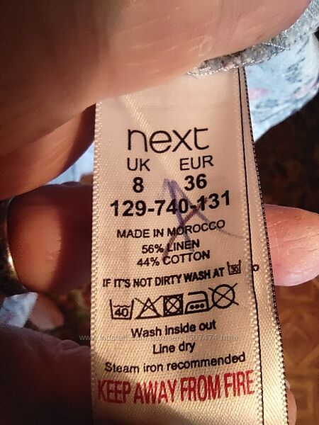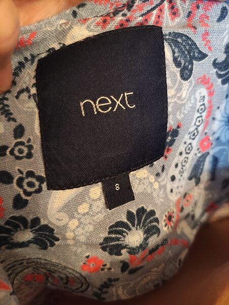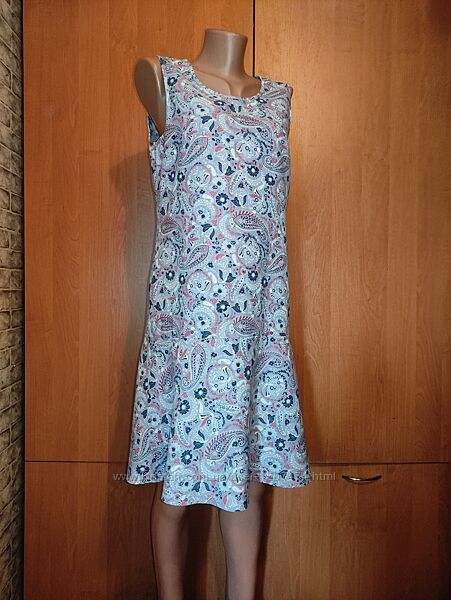 Красивое, нежное платье фирмы Next с приятным принтом. Очень легкое, не жаркое, состав - 56% лен и 44% хлопок. Платье в состоянии нового, никаких нюансов! Очень интересный фасон - нижний волан скроен по косой, благодаря чему платье смотрится очень мило и женственно.Размер указан 8, идеально сядет на наш 44 размер. Внимательно смотрите замеры: