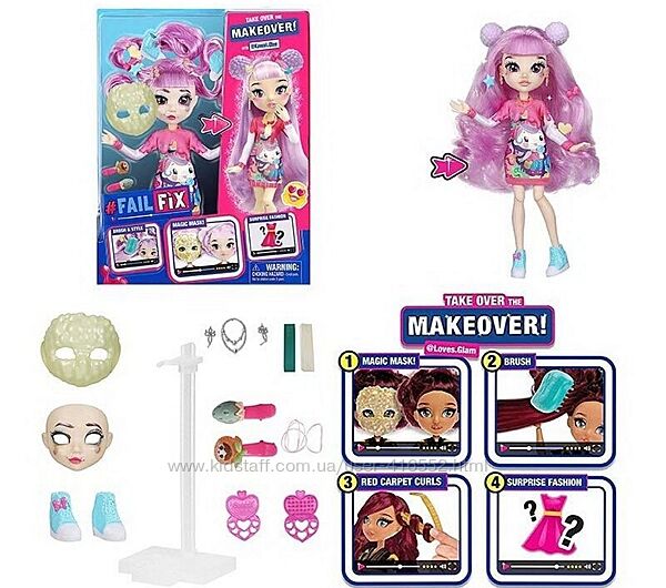 Сперва нужно исправить макияж, ведь выходить так на улицу точно нельзя! В этом нам поможет волшебная пузырчатая маска. Надеваем ее поверх неудачного макияжа и ждём. После снимаем и видим сказочное преображение! Красивая помада, яркие тени и блески на лице превратили нашу куклу в настоящую звезду. Но это только пол дела, пора приступать к прическе. Для этого можно воспользоваться расческой, резинками, прекрасной заколкой и цветными мелками, которые идут в комплекте. Ну, и чтоб образ стал завершенным, нужно добавить немного аксессуаров! В арсенале имеется модная обувь, стильные сережки, ожерелье и другие аксессуары, которые станут для юного стилиста модным сюрпризом. Теперь наша звезда готова покорять мир!