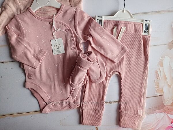 Подробное описание: 3-6м,6-9м. Набор из боди на кнопках и пинетки George, длинный рукав.