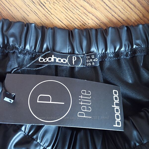 Леггинсы BooHoo Petite (до роста 160 см) из искусственной кожи, размер - UK12/EUR40/US8, цвет - черный, внизу штанины - молния. Замеры: длина - 93 см, шаговая - 66 см, долина посадки по переднему шву - 29 см, по заднему - 36 см, ширина по поясу - 36 см (+9 см резинка), по бедрам - 50 см.