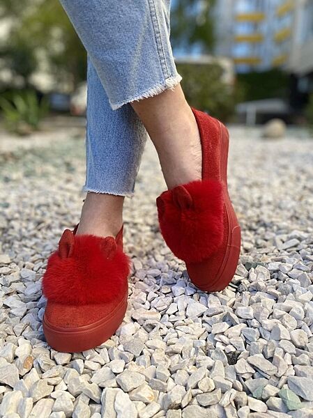 Слипоны женские Seaster NB50 красные весна-осень эко-замш