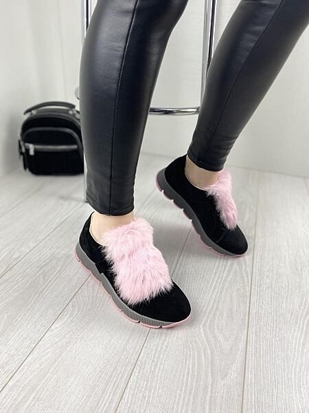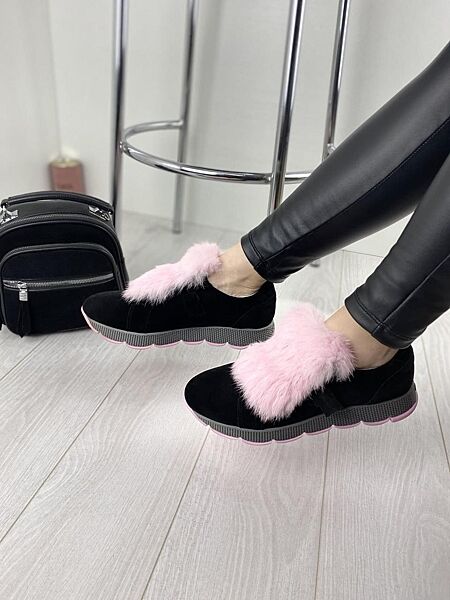Слипоны женские DITAS ML чёрныерозов весна-осень замша натуральная