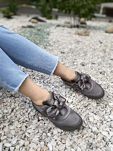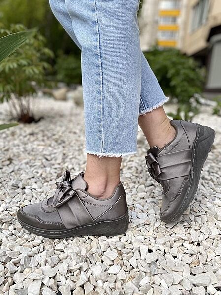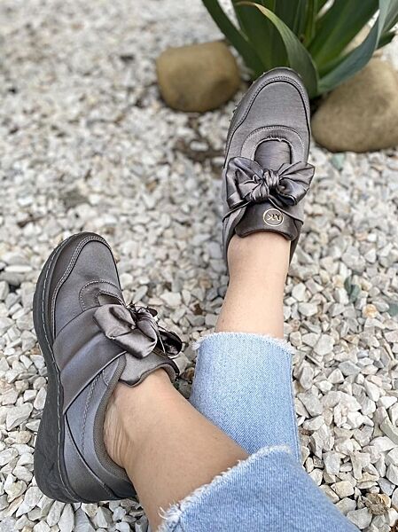 Слипоны женские Bosida LC9661-9 серые весна-осень атлас