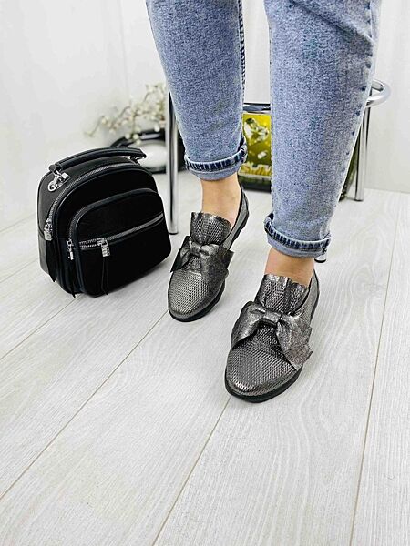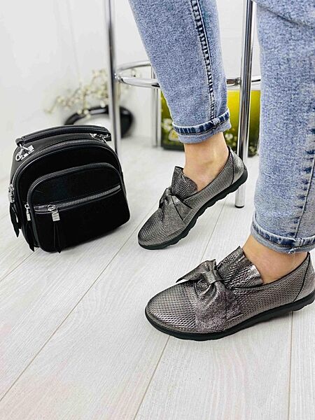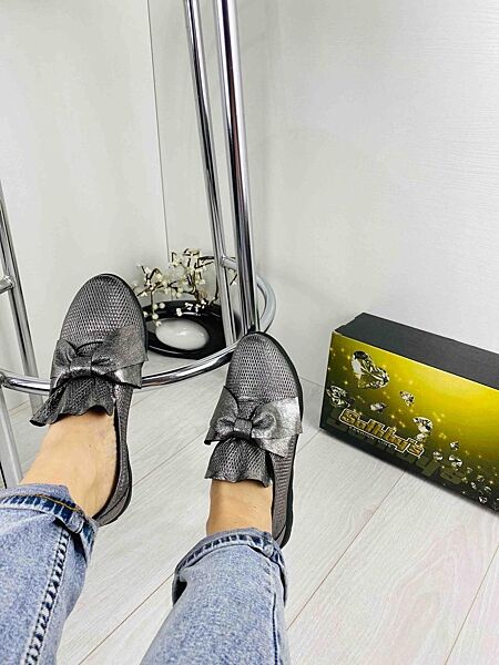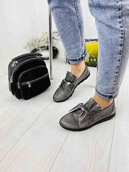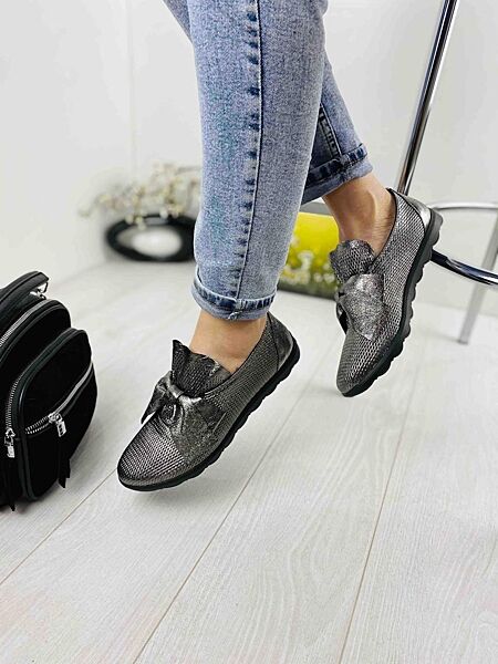 Слипоны женские Sothby ´s K-378/3 тёмн. серебро весна-лето кожа натура