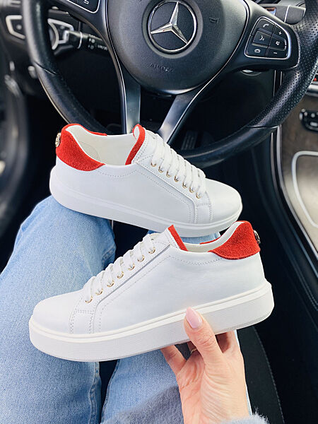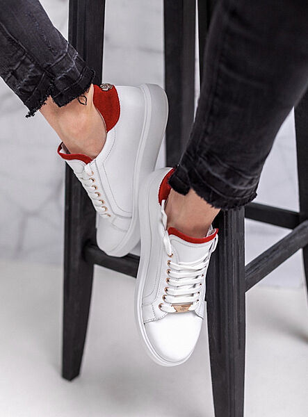 Кроссовки женские ABBI 21600 бело/красные весна-осень натуральная кожа