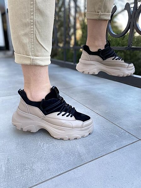 Подробное описание: Кроссовки женские RONE 019 капучино/чёрные весна-осень натуральная замша ко