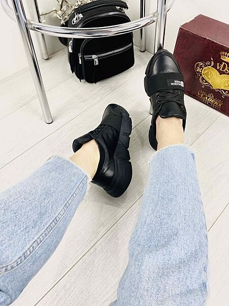 Подробное описание: Кроссовки женские VLADEKS 1074 чёрные весна-осень кожа натуральная