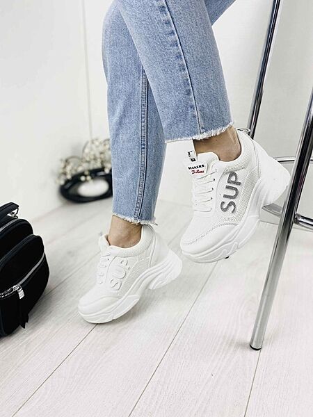 Кроссовки женские 189-5 белые весна-лето сеткаэко-кожа