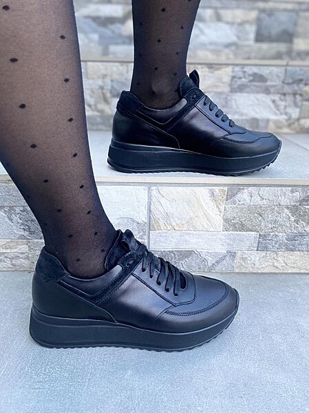 Подробное описание: Кроссовки женские EMELI 701/1 чёрн. кожачёрн. замша весна-осень натуральная