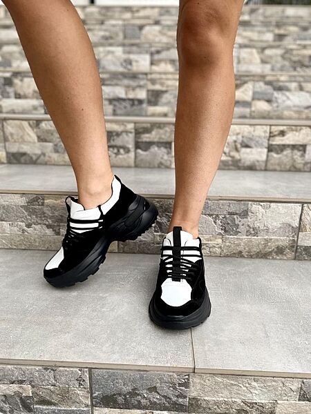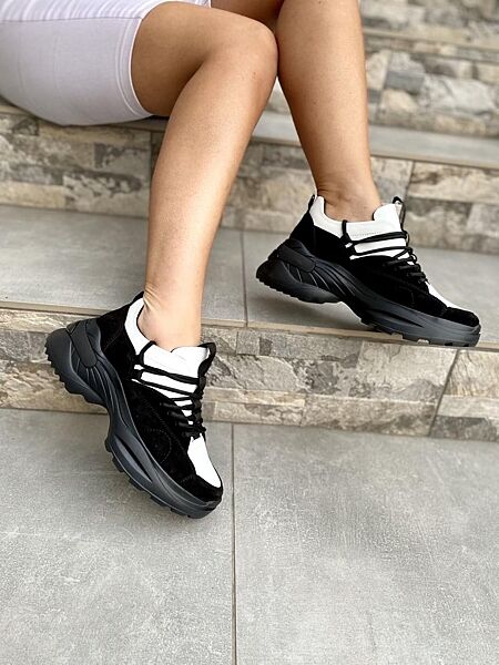Подробное описание: Кроссовки женские RONE 019 бело/чёрный весна-осень натуральная замша кожа