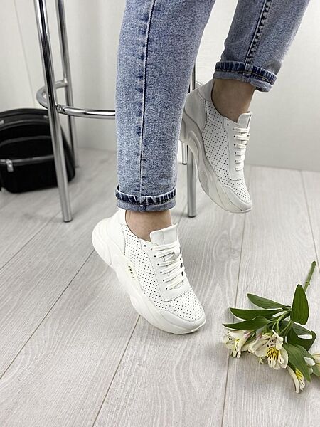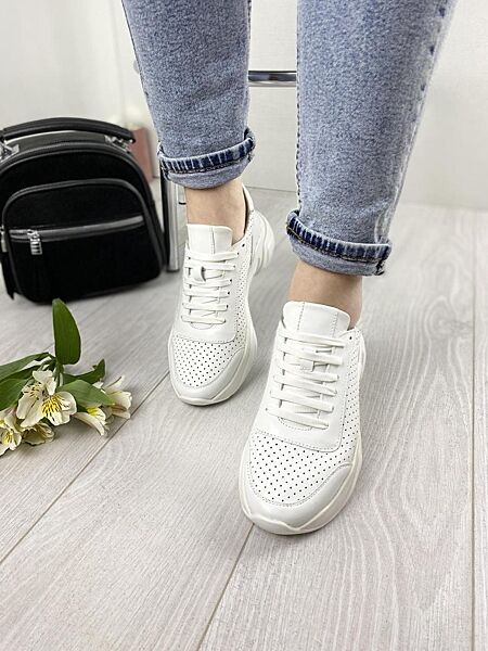 Кроссовки женские EMELI 914/4 ST белые перф. весна-осень натуральная кожа