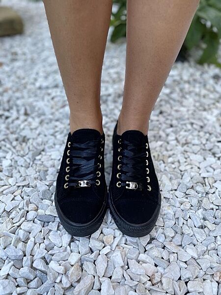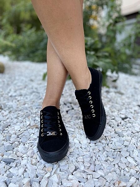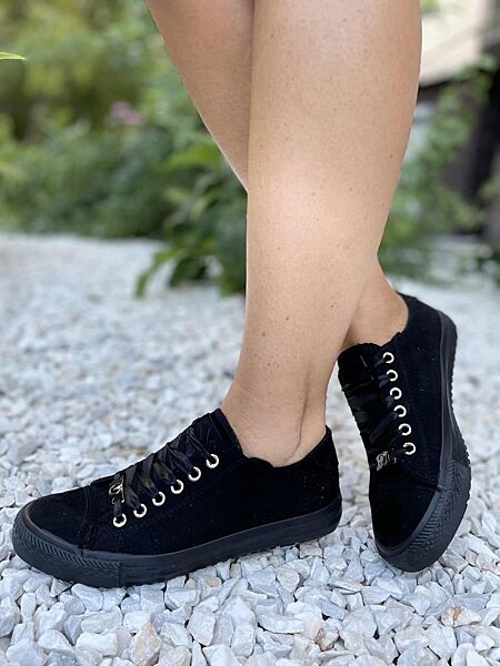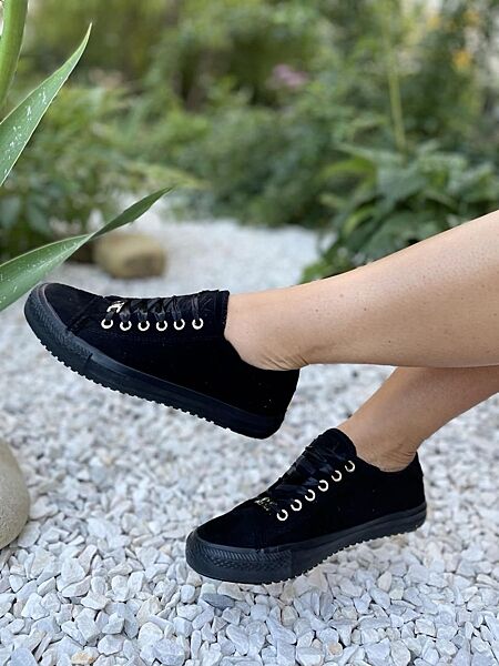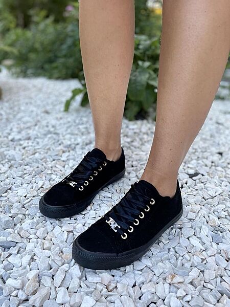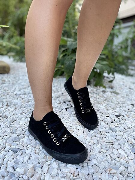 Кеды женские AB-161 чёрные весна-осень замш искуственный
