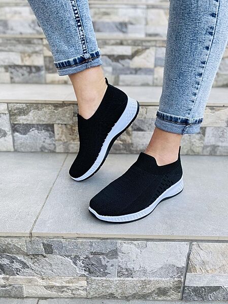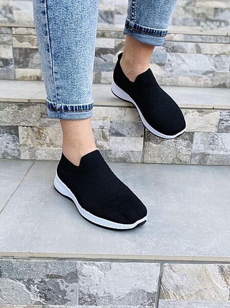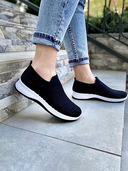 Слипоны женские LB 556-1 чёрные весна-лето сетка