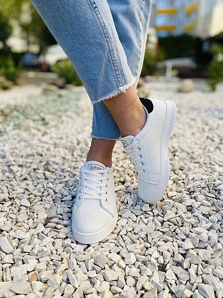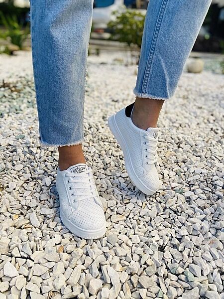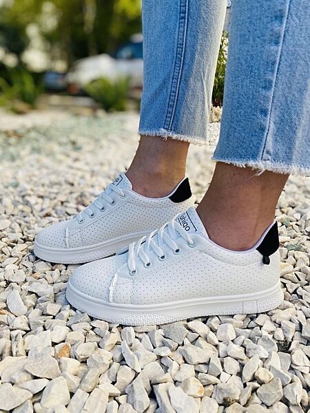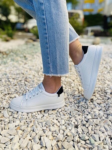 Кеды женские XIFA 2021-076 белые/чёрн. весна-осень эко-кожа