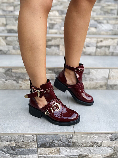 Ботинки женские ARLEN БК-15 бордовые весна-осень кожа лакированая натуральн
