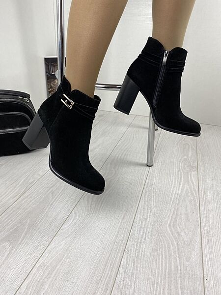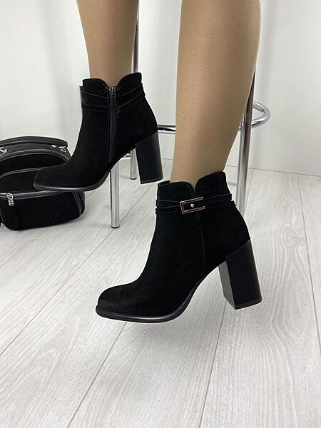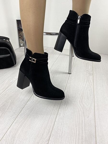 Ботинки женские Injers 586 чёрные весна-осень замша натуральная