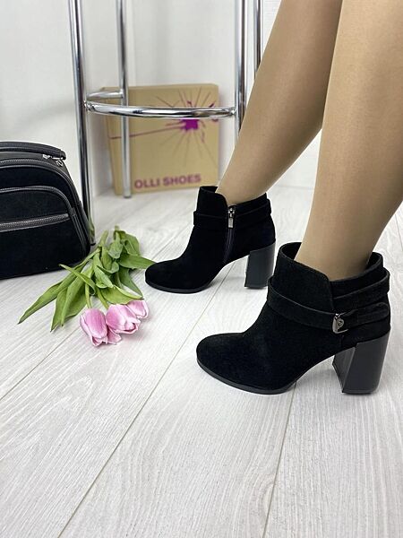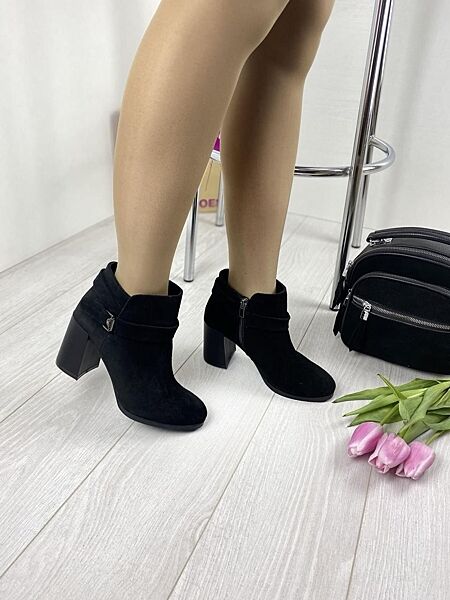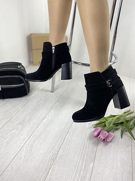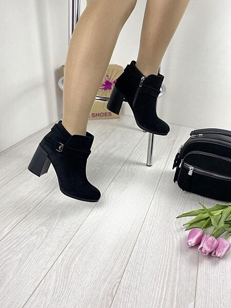 Ботинки женские Injers 559 чёрные весна-осень замша натуральная