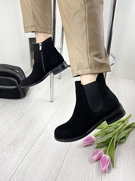 Ботинки женские Vesna 2420 чёрные весна-осень замш натуральный