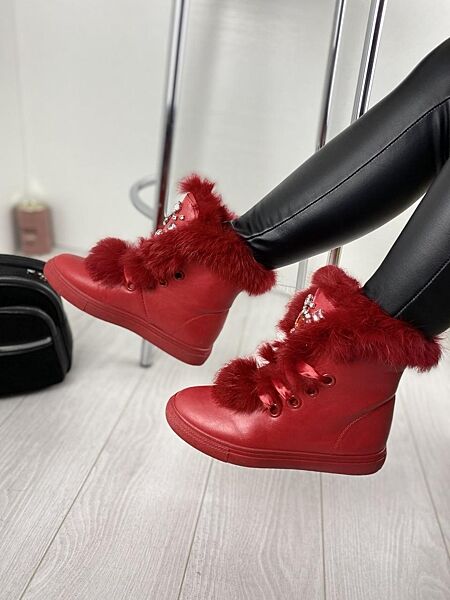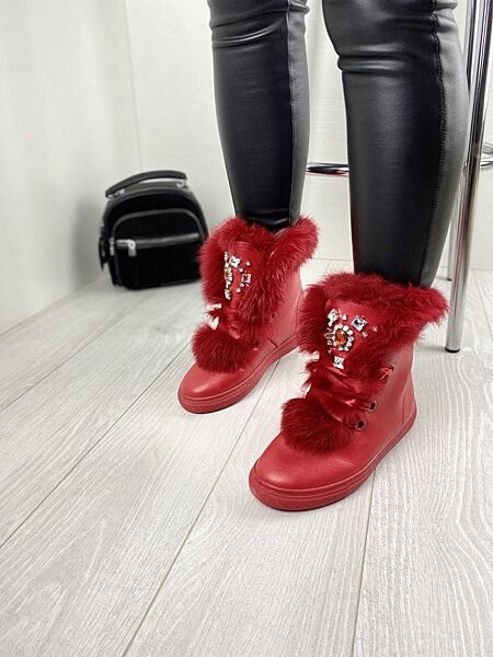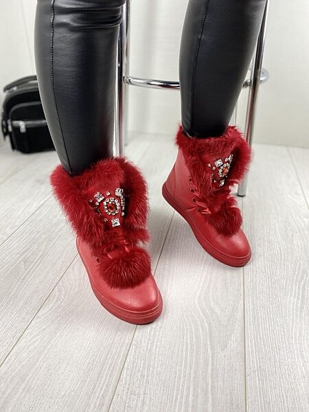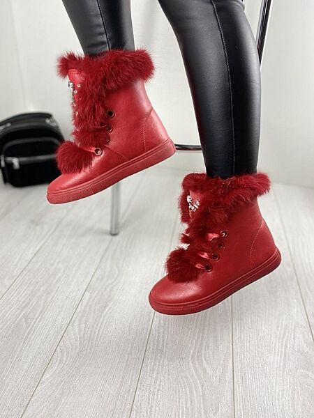 Ботинки женские Violeta 20-431 красные зима эко-кожа