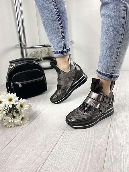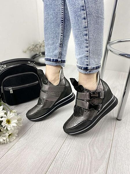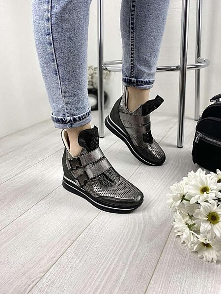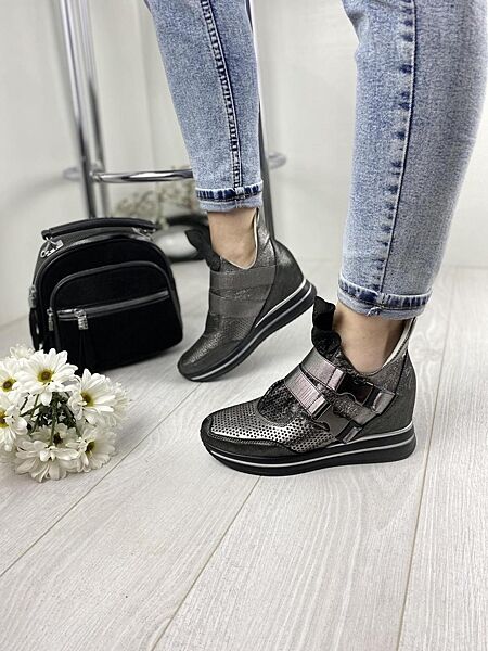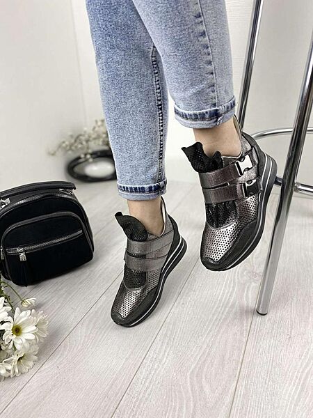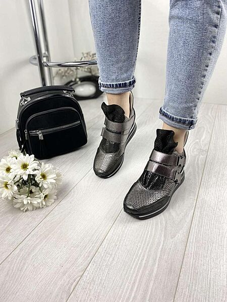 Сникерсы женские DE MARKO 7001 никель весна-лето кожа натуральная